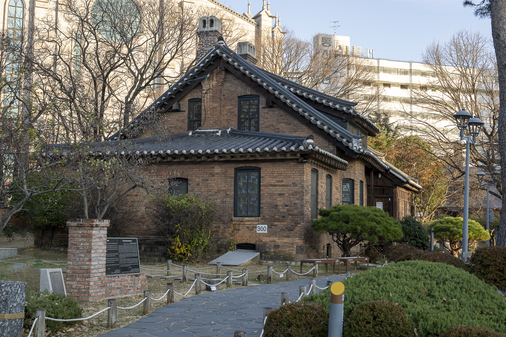 푸른 잎이 다 떨어진 자리에 드러난 선교사들의 고택은 더 뚜렷한 존재감을 드러내고 있었습니다. 100년이 넘는 세월을 버텨온 붉은 벽돌 건물들.