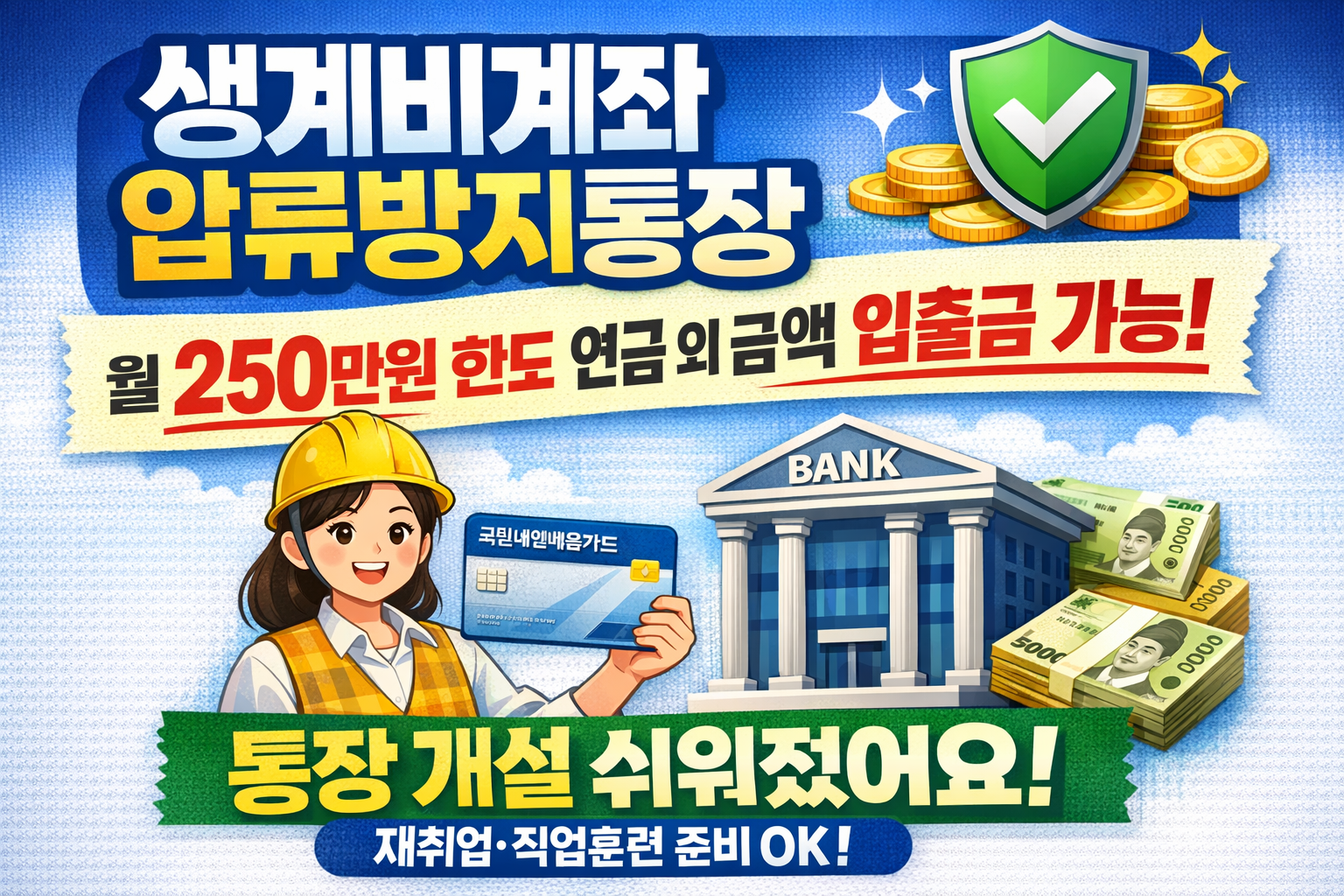 생계비계좌 압류방지 통장개설 제도가 2026년 2월 1일부터 시행되면서 월 250만원 한도 내에서는 연금 외 금액도 입출금이 가능해졌습니다.
